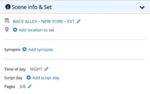 Script breakdown: Edit scene and set info