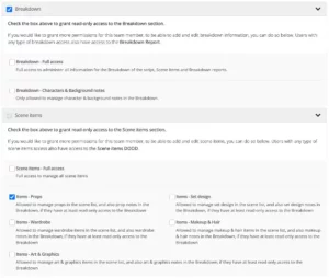 Breakdown, link to locations, share images, 3D files, add props, scene items and continuity.